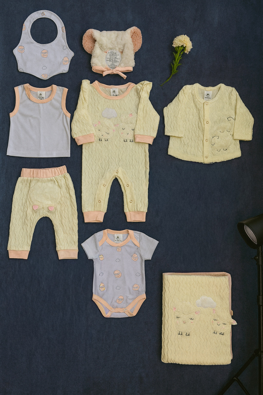 Este encantador set de bienvenida x8 piezas, incluye todo lo necesario para vestir y abrigar a tu peque con comodidad y ternura. Está compuesto por: