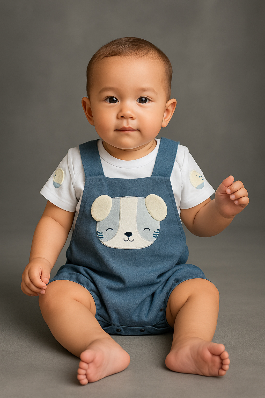 ¡Un outfit completico y lleno de ternura! 😍✨ Este conjunto de 2 piezas incluye un body tipo jardinera en tono beige con carita de perrito 🐶 y una camiseta de manga corta a juego, ideal para que tu bebé esté cómodo, fresquito y súper adorable durante todo el día 💛👶