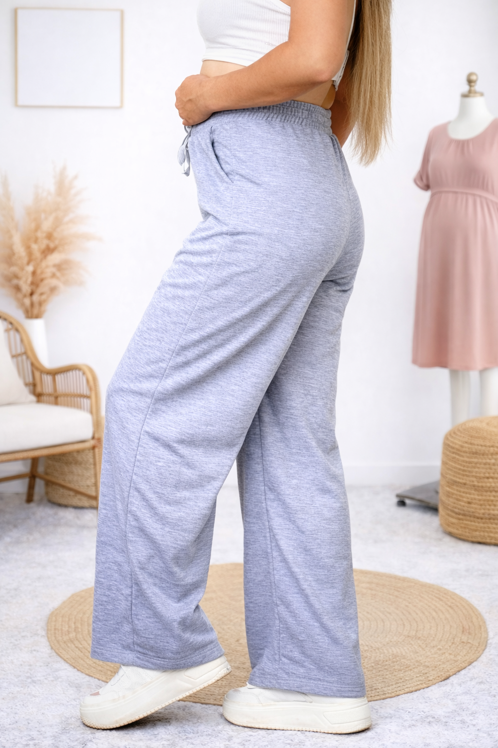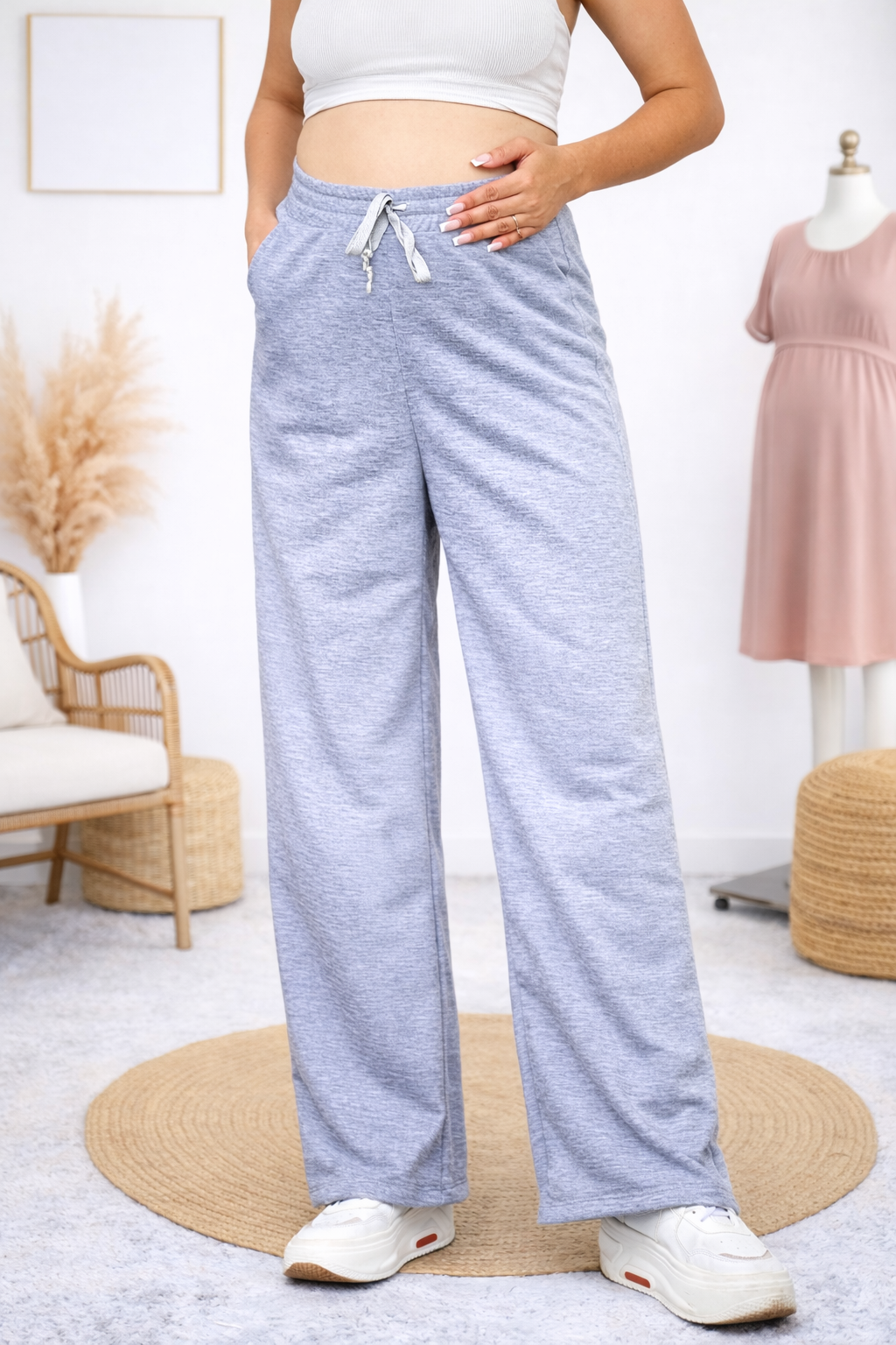 Nuestro jogger está confeccionado en burda licrada, una tela suave, resistente y con la elasticidad ideal para brindarte comodidad en cada etapa del embarazo.